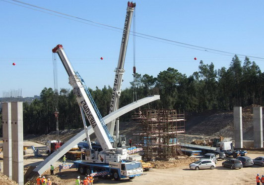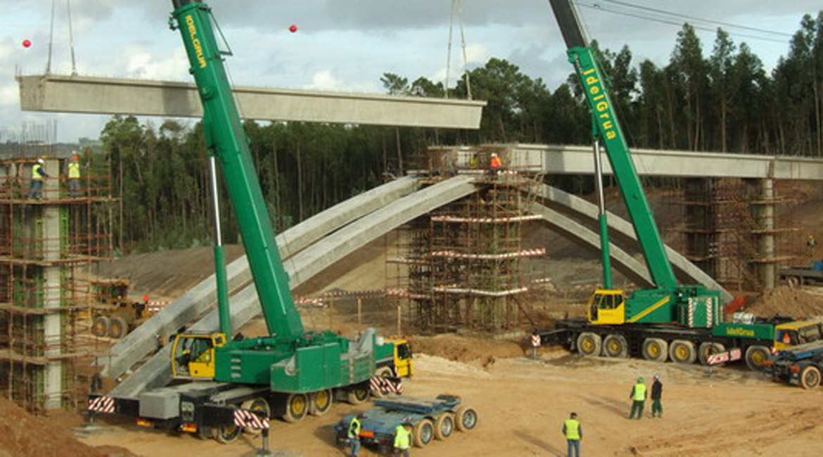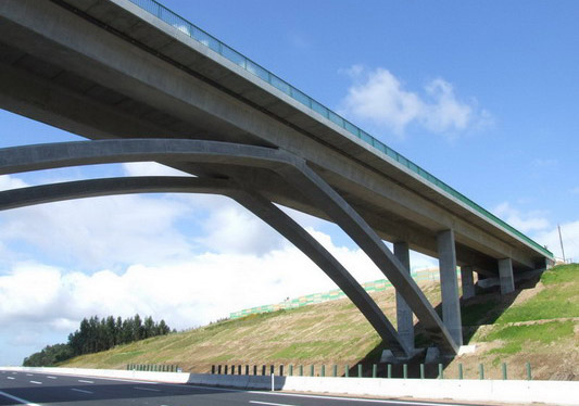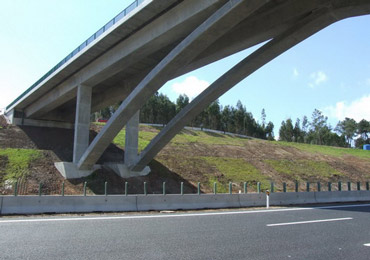 Passagem superior com alvéolos pré-fabricados e vigas caixão.