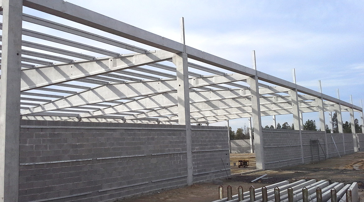 Solução integral com pilares, vigas, vigas de secção variável e madres de cobertura.